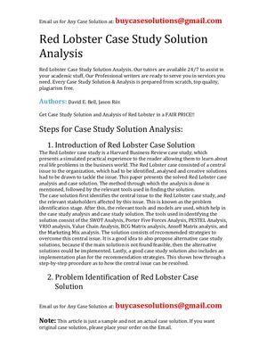 Read RED LOBSTER CASE STUDY ANALYSIS Epub ManyBooks